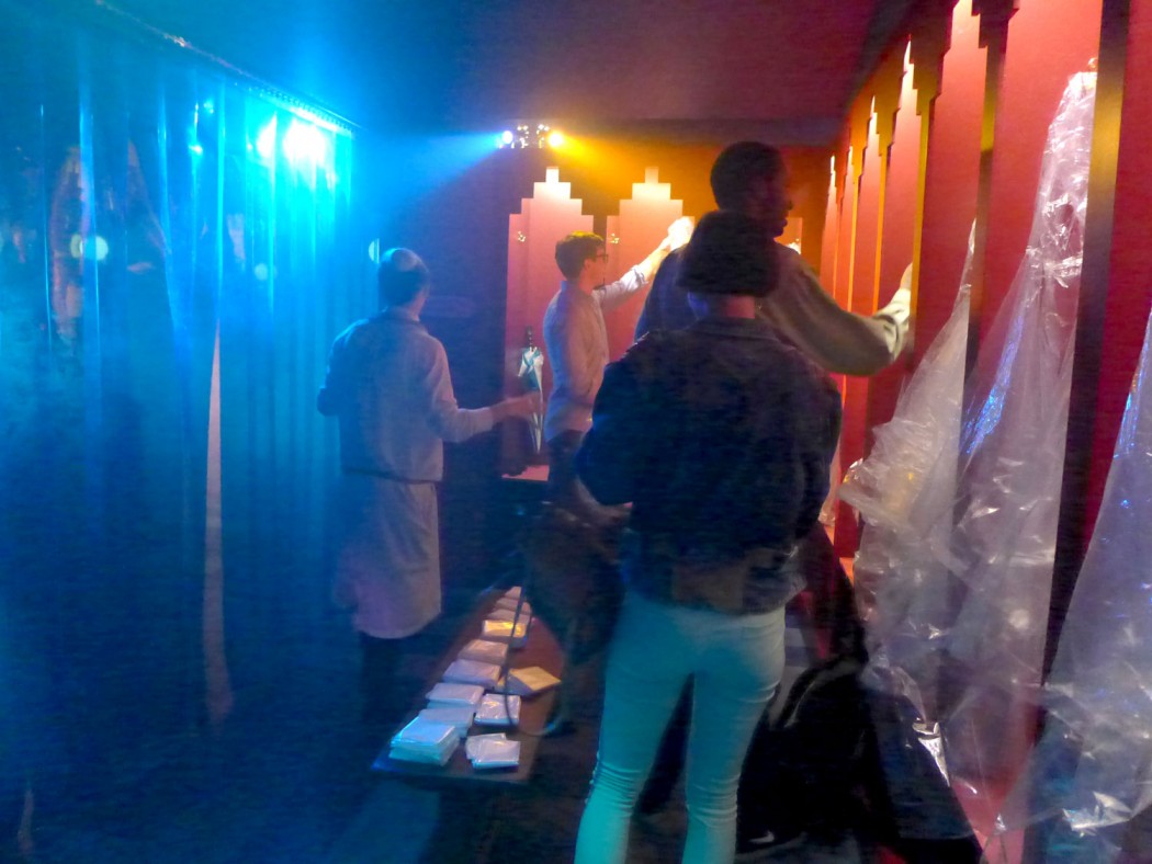 Her er det også en bar i naborommet til skyen som på sitt vis er en del av installasjonen. To bartendere mikser cocktails slik at du samtidig som du er i skyen kan drikke og på den måten lettere kjenne effekten. Så kan det jo diskuteres hvilken cocktail som har sterkest effekt, den du drikker eller den du inhalerer. Jeg tipper det første.