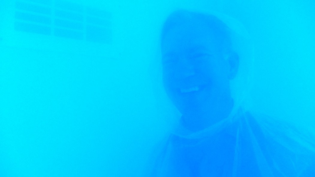 Så funker dette? Blir vi drita av luften? På ingen måte. Vi famler rundt i halvblinde mens alkoholdampen ikke har større effekt enn at den irriterer slimhinnene og får det til å renne fra nesene våre. Dette er egentlig bare surr, men når det er sagt er det veldig morsomt surr. Folk rundt oss er naturlig nok i godt humør, ikke så mye på grunn av beruselsen som på grunn av den besynderlige opplevelsen.