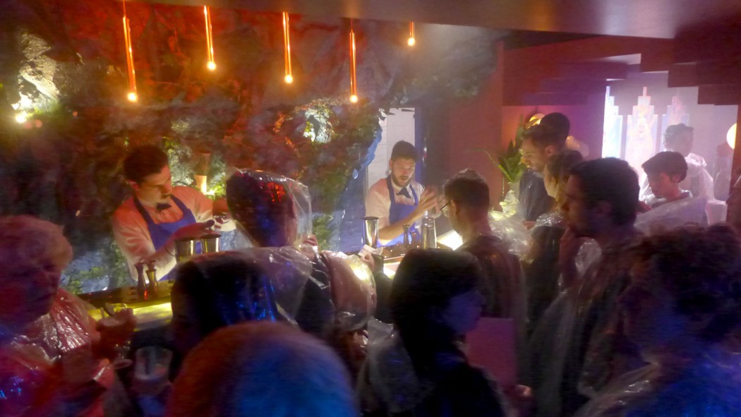 Dette høres sykt ut, og det er det vel også. De besøkende får utdelt en plastponcho for å beskytte klær og hud fra den alkoholholdige dampen før de entrer skyen og inhalerer alkoholen gjennom lunger og øyeepler. Luftfuktigheten er på hele 140 prosent, og det er så mye alkohol i luften at du knapt ser noe som helst foran deg. Du skimter bare konturer av vegger, dører og andre mennesker foran deg mens du forsøksvis nyter drinken din – som du ikke drikker. Alkoholinnholdet i luften er i forholdet 1:3 og tilsvarer angivelig en stor gin tonic.