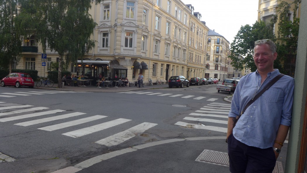 Vi hadde lært hjemme at vi skulle takke for oss og gikk til bordet som servitøren hadde pekt ut. Der satt det blant annet en mann vi dro kjensel på, men ikke helt kunne plassere. Vi takket pent og dro videre nordover og hjem fra Solli plass.
