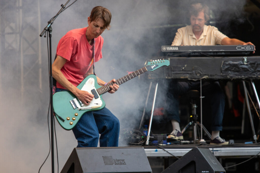Og så, endelig – GITAR! Det legendariske oslobandet Euroboys (tuftet på restene av Kåre & The Cavemen) er kommet sammen igjen for å feire at det er 20 år siden de ga ut sitt legendariske andrealbum Soft Focus og spilte det mer eller mindre kronologisk og i sin helhet, med et par avstikkere. Bandets luftige og svevende sanger marinert i et kalifornisk lydbilde slik det låt i skjæringa 60- og 70-tallet, er perfekt for en vakker sensommerdag i Tøyenparken.