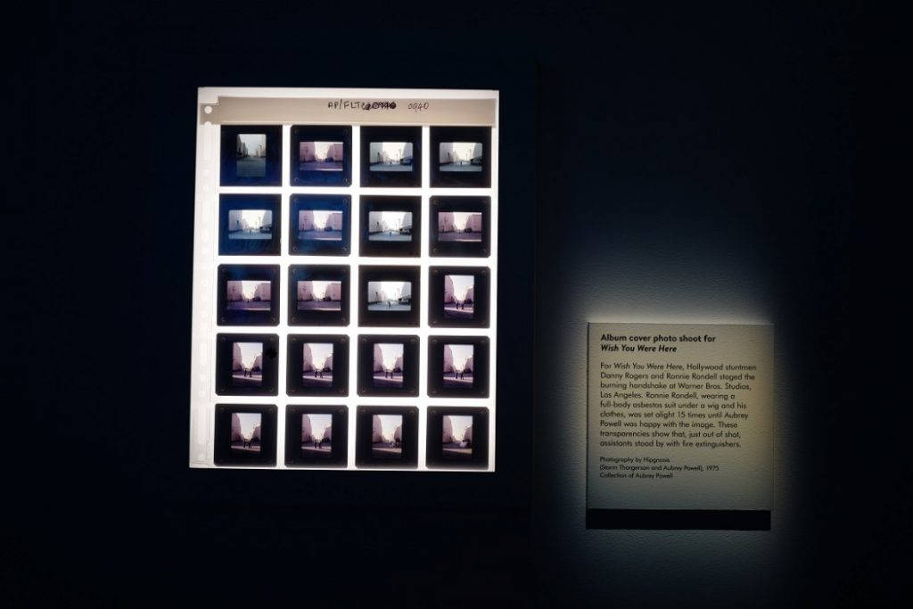 De fleste av Pink Floyds mange ikoniske covere ble designet av Storm Thorgerson og Aubrey «Po» Powell, skolekamerater av flere av bandmedlemmene, som startet selskapet Hipgnosis. De sto bak alle covere fra andrealbumet A Saucerful Of Secrets i 1968 til Animals i 1977, og ble hentet tilbake til «familien» da Roger Waters sluttet i bandet i 1985. Thorgerson som døde i 2013 var designeren av de to, Powell som er blant utstillingens kuratorer, var fotografen med de enorme vyene. For ham var det ikke snakk om å jukse frem eller manipulere bilder.