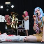 Variasjon og mangfold kom også til uttrykk da norske Beglomeg entret naboscenen Vindfruen rett etterpå. Dette må være blant de mest forunderlig utseende band som har stått på en scene noen gang, en slags dragversjon av Village People, med blytung musikk i skjæringspunktet mellom frijazz og elektronika. Jeg ble ikke værende lenger enn de tre låtene vi fikk fotografere under, det var liksom ikke helt meg. Men jeg bruker gjerne et ord som «interessant» for å beskrive Beglomeg, det er ikke det.