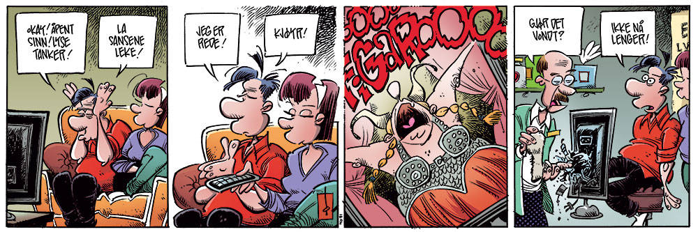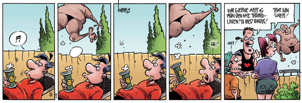 Ja, det ER ganske krevende å sette seg inn i andre menneskers følelsesliv, og jeg forstår at det er mulig å la seg fornærme og føle seg nedverdiget slik Timbuktu gjør det i tilfellet Frodes vits, men reagerer han instinktivt eller er det han ser virkelig sårende for ham? Det er klart det er lett for meg, hvit, etnisk norsk og det hele, å si at Frode Øverli ikke er slem og avfeie vitsene hans som nettopp vitser, men jeg tror de færreste faktisk vil beskylde ham for fraværende empatiske evner. Frode ler med, ikke av. Ta bare en titt på disse stripene.