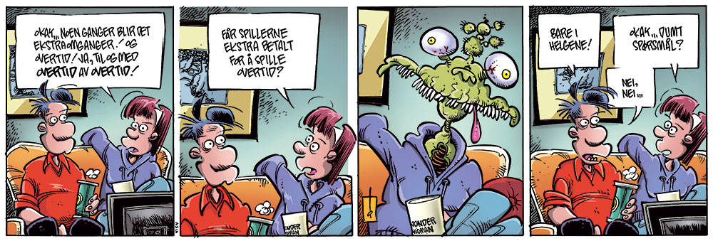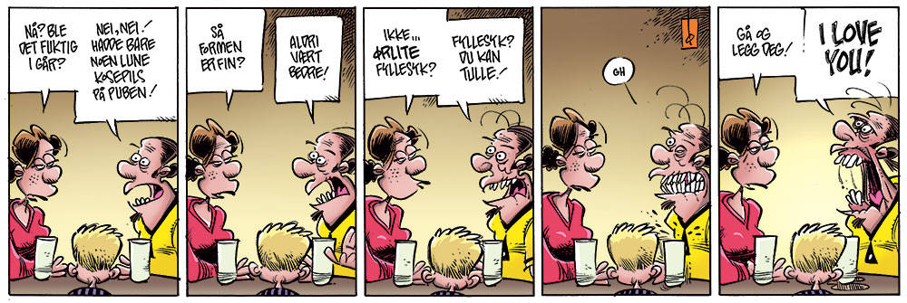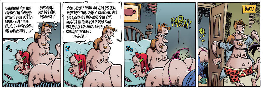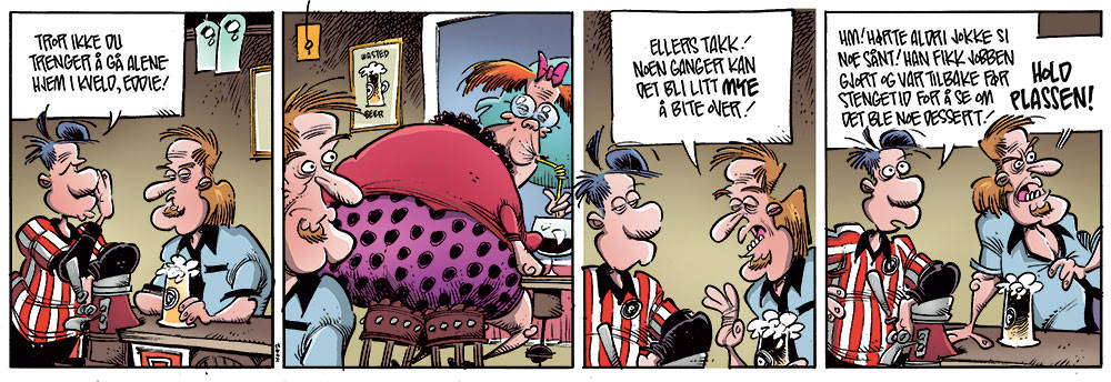 Når jeg nå ripper opp i denne fem år gamle historien er det selvsagt for å rette søkelyset mot Frode Øverlis utallige, gjentatte fornærmelser. I den definitive, i uoverskuelig fremtid også pågående, Pondus-antologien som bærer tittelen Eliteserien er vi kommet til bind nummer 18, og denne gang er det Pondus’ mildt overdrevne skrullehomo-naboer Tito og Baltazar som er cover boys og temafigurer. Og ikke bare gjør Frode sitt beste for å fornærme alle homser i mils omkrets i denne boken, han har også sitt å utsette på helt vanlige kvinner, burugler og skjønnheter, alle som liker vinteridrett og ikke heier på Liverpool, alle som liker hip hop eller U2, black metal-fans, operaentusiaster, bussjåfører, psykologer, dverger, kvisete guttunger med colabånnbriller, trøndere og temmelig mange flere. Men du hører ikke at noen sutrer av den grunn, gjør du vel?