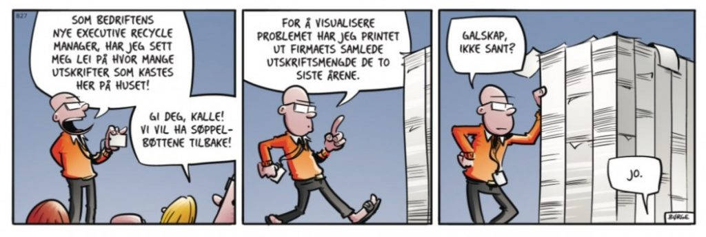 Denne gangen blir vi med på julebord i bedriften i en lengre historie, Julebords of Norway, som Børge laget til juleheftet i 2012, et format han også mestrer godt. I hvert nummer av bladet har han dessuten en sekvens med striper som utgjør en lengre historie, og vi får flere av dem i Hva var det jeg sa?, blant annet historien om kaffekoppen til Kjell som havner på avveie og den om Kalles store og svært mislykkede resirkuleringsprosjekt.