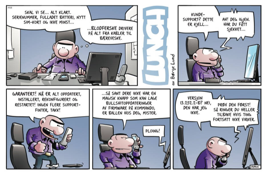 Så nok en gang altså, spot on fra en av Norges fremste serieskapere. Hva var det jeg sa? er, i tillegg til å være «måloppnåelsens svikefulle fetter», den fjerde Lunch-boken til nå, og den beste så langt. Vi er kommet til et stadium der serien har funnet sin perfekte form og latteren runger så sidene blafrer mellom hendene våre. Den ekstra gode nyheten er at Egmont nå har bestemt seg for å gi ut to bøker per år, og derfor kommer bok nummer fem i salg til høsten.