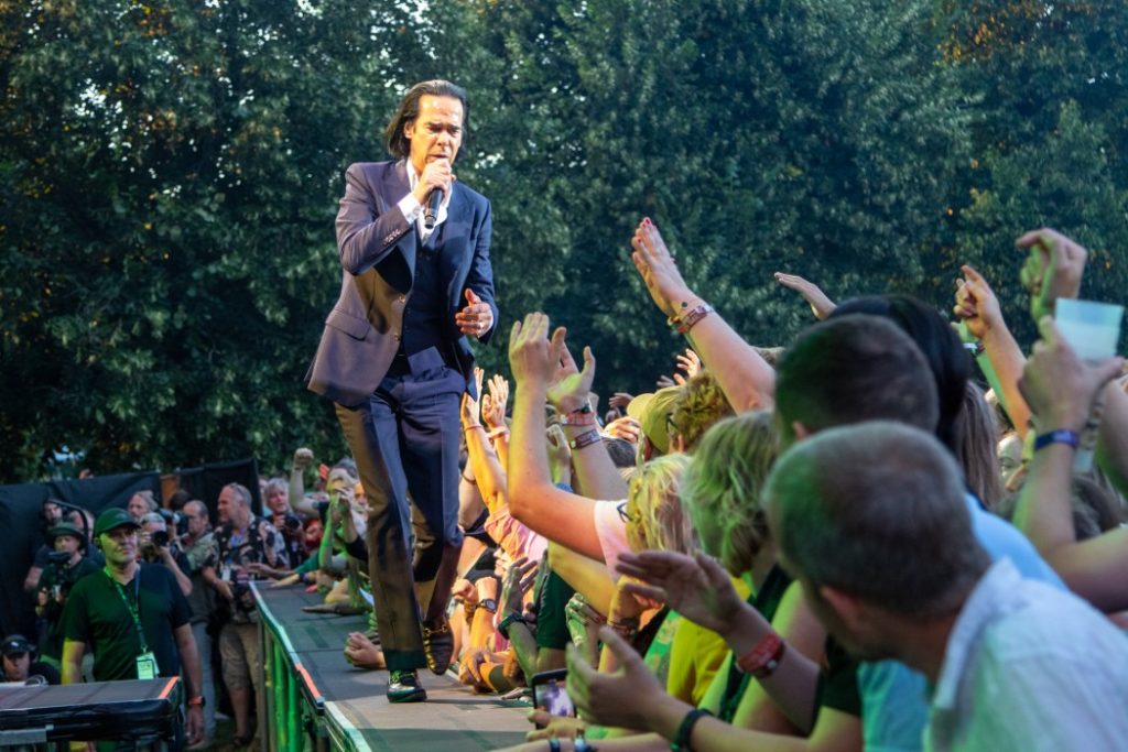Konserten i går føyde seg fint inn i rekken av turneer der vi ser Cave praktisk talt bli bedre og bedre, gang for gang. At det ikke var like fantastisk som for fem år siden, skyldtes nok først og fremst konsertens første del som foregikk i dagslys. Jo mer mørket la seg over Tøyenparken, jo «riktigere» syntes konserten. Jeg er veldig lei av å se Cave omtalt som en slags yppersteprest der han kontinuerlig vandrer blant publikum og involverer dem i hver eneste låt, men jeg ser jo også hva som menes. Men i den grad vi her snakker om en «Church of Cave» er den til vel så mye for hans egen del som for publikum. Han får næring og inspirasjon på denne måten, hvilket også er årsaken til at han har Red Hand Files gående. For Cave er det en form for terapi, også på grunn av at han de siste årene har mistet to sønner. Sterkere mennesker har gått til grunne av lignende årsaker, men han finner en åpenbar flukt i kunsten og i publikumskontakten.