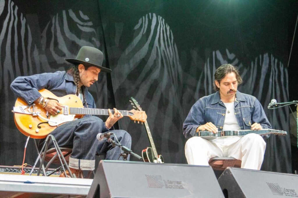 Jeg hadde virkelig sett frem til å oppleve Hermanos Gutiérrez, brødreduoen som med sine to siste, Dan Auerbach-produserte plater, fullstendig har bergtatt meg. Alejandro og Estevan Gutiérrez har vokst opp i Sveits med sveitsisk far og ecuadoriansk mor, og det er den latinske arven som danner grunnlaget for deres musikalske prosjekt. De er begge gitarister og til en viss grad multiinstrumentalister, og på albumene El Bueno y el Mano (2022) og Sonido Cósmico (2024) ledsages de av et utsøkt knippe musikere. Den nydelige instrumentalmusikken maner frem bilder av latinamerikanske landskaper, fra ørken til frodig urskog, og er til tider så vakker at du får lyst til å grine av ren glede.