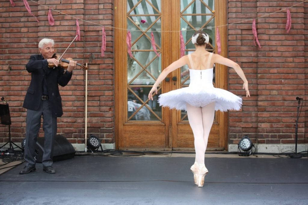 Det er ikke akkurat noen liten glede å se den vakre ballettdanserinnen Anette Antal fra Den Norske Opera danse til musikk fra Chaplin-filmen Limelight og deretter «Svanen» av Camille Saint-Saëns heller. Til tonene av Tellefsens fiolin og Gimses klaver trollbinder hun det lille publikummet som har funnet veien til festivalen så tidlig, og regnet er det da bare å ignorere. Antal må løpe av sted til jobb, men Tellefsen har flere gjester på lur, og vi får pasjonert og dramatisk sigøynermusikk når selveste Raya (Raisa Bielenberg) kommer for å synge. Det blir i det hele tatt en svært så trivelig start på dagen, og om Arve Tellefsen kan hende er et overraskende valg er det ingen tvil om at det var svært passende å ha ham der i går. Den nydelige borggården er som skapt for slike konserter.