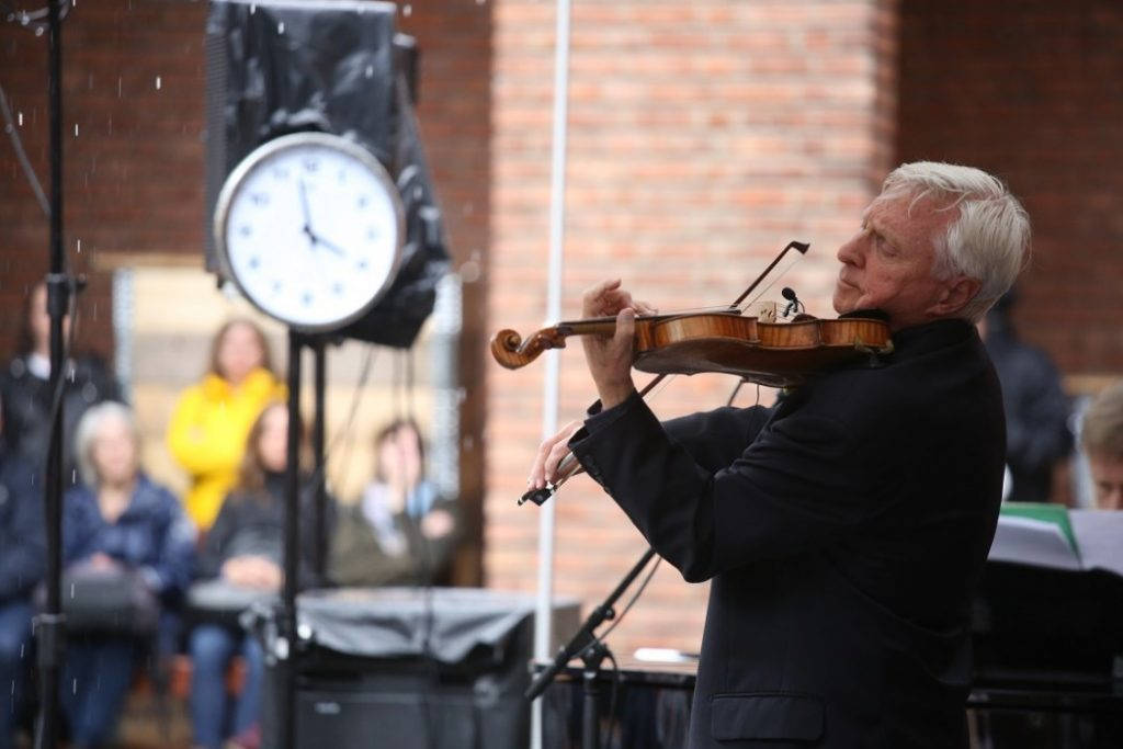 Men jeg foregriper begivenhetenes gang. Gårsdagen var en dag der du fikk mye regn for penga, for å si det forsiktig. Jeg ankom i tide til dagens andre konsert med ingen ringere enn vår egen superfiolinist Arve Tellefsen i borggården på Vigelandmuseet der de aller ivrigste satt på første rad i regnet – med øl – og ventet på at Trondheims store sønn skulle innfinne seg. Den nå 80 år gamle Tellefsen ser ikke ut som han er en dag over 60 der han venter på at tonene fra Ivan Aves konsert på hovedscenen skal stilne slik at han og pianist Håvard Gimse kan få den nødvendige roen som trengs for å fremføre følsomme musikkstykker av Saint-Saëns og Dvorak. Han presenterer seg pent for publikum noen minutter etter oppsatt skjema og fremstår som den usedvanlige sjarmerende og sympatiske mannen jeg tror han er. Jeg har aldri hilst på Arve Tellefsen, men jeg innbiller meg at det ville vært en udiskutabel glede.