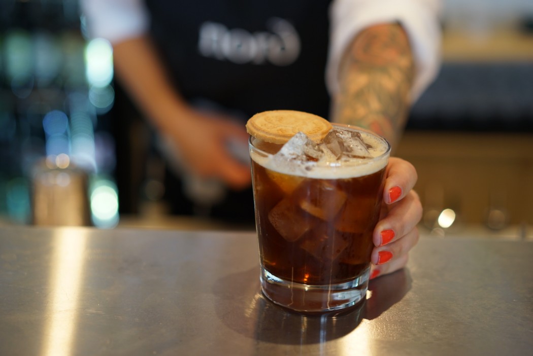 Anders og jeg fikk smake to deilige cocktails. Tadvin er lett, forsiktig syrlig og veldig elegant i smakene, med Braastad VS, Campari, sitron, bringebærsirup og eggehvite, med et dryss av revede kaffebønner på toppen. Drinken med statementnavnet Lidelsen er lykkens pris er en tumbler fylt med isbiter og inneholdende Vikingfjord vodka, Créme de Cacao, Fernet Branca og Cold Joet (?), og er veldig god!